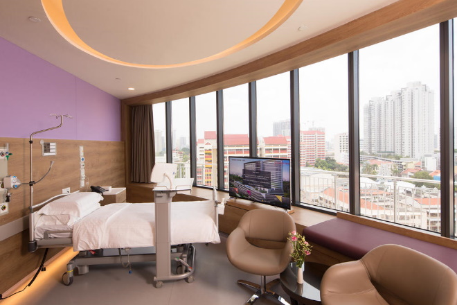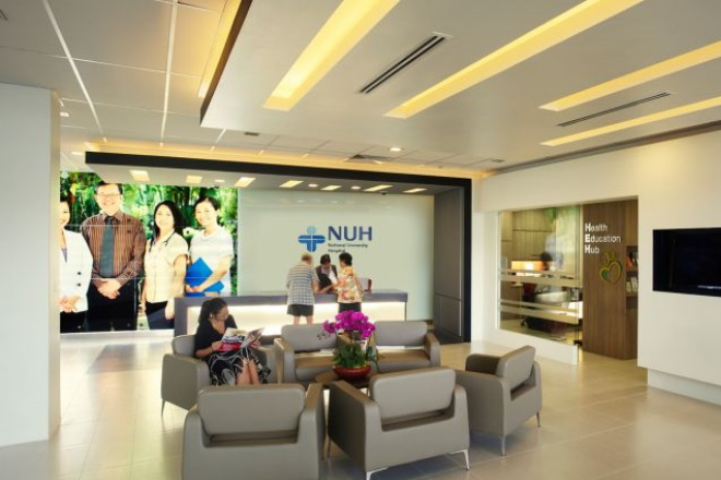 新加坡中央醫院 National University Hospital 新加坡国立大学医院(NUH)成立于1985年,是新加坡最大的国立医院之一,也是新加坡第一家重组医院。同时,也是一个有内外科和牙科的主要的转诊中心。 医院环境优雅、舒适,候诊室内不仅提供舒适的设施,而且有卫生科普知识的宣传的措施。